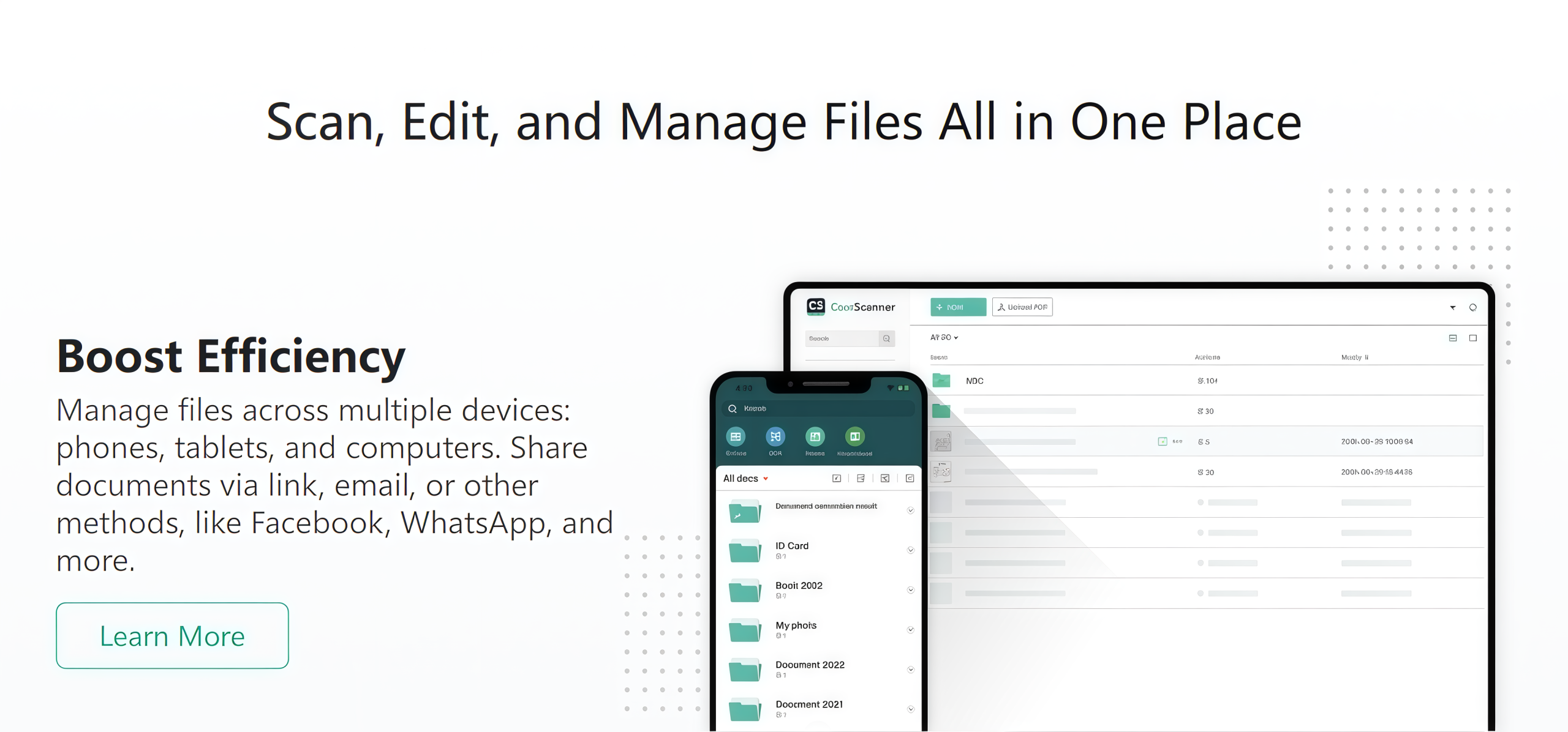 • Pengelolaan Desktop Terpusat: Sinkronkan pemindaian secara instan ke pusat desktop terpusat dan atur folder seperti “Pemasok” atau “Pajak PPN” untuk pengawasan penuh.